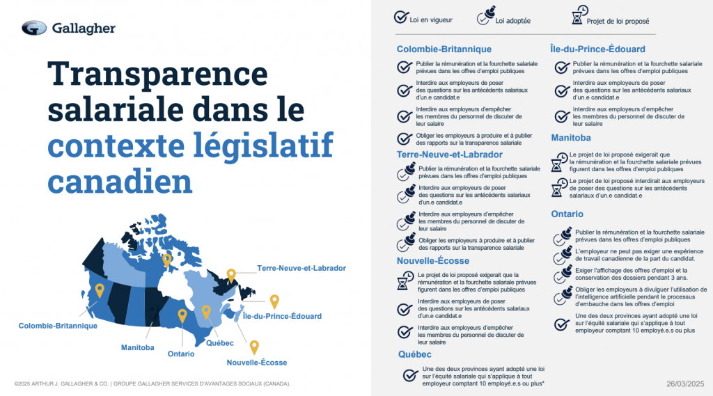 Le rapport fait également le point sur le contexte législatif en matière de transparence salariale, en particulier à la lumière des lois adoptées en Colombie-Britannique et en Ontario.