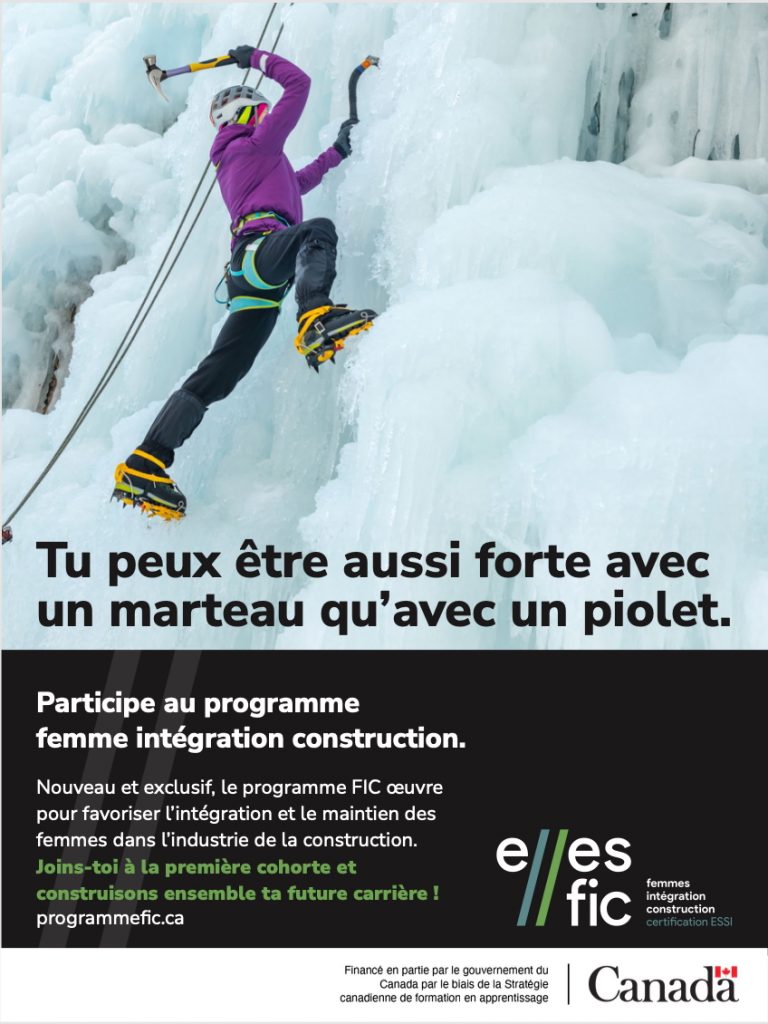 L’initiative F.I.C. est financée en partie par le gouvernement du Canada, à travers sa Stratégie canadienne de formation en apprentissage – Femmes dans les métiers spécialisés, dont l’un des objectifs est de favoriser l’équité en matière de main-d’œuvre qualifiée et productive dans différents secteurs d’importance.