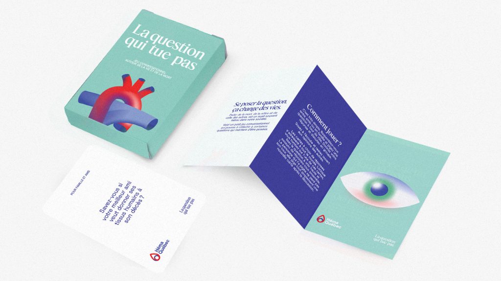 À l’occasion de la semaine nationale du don d’organes et de tissus (SNDOT) qui a lieu du 20 au 26 avril 2025, Héma-Québec dévoile “La question qui tue pas”, un jeu de cartes conversationnel conçu pour encourager les discussions sur le don de tissus humains, incluant la cornée, les artères et les valves cardiaques, ainsi que la peau, les tendons et les os. Imaginé par l’agence créative Sid Lee, ce nouvel outil ludique et éducatif vise à démystifier le sujet et à inciter la population québécoise à exprimer leur volonté à leurs proches en matière de dons de tissus humains.