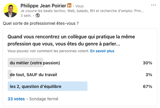 Commençons par un premier coup de sonde mené sur LinkedIn, pour mesurer les forces en présence.