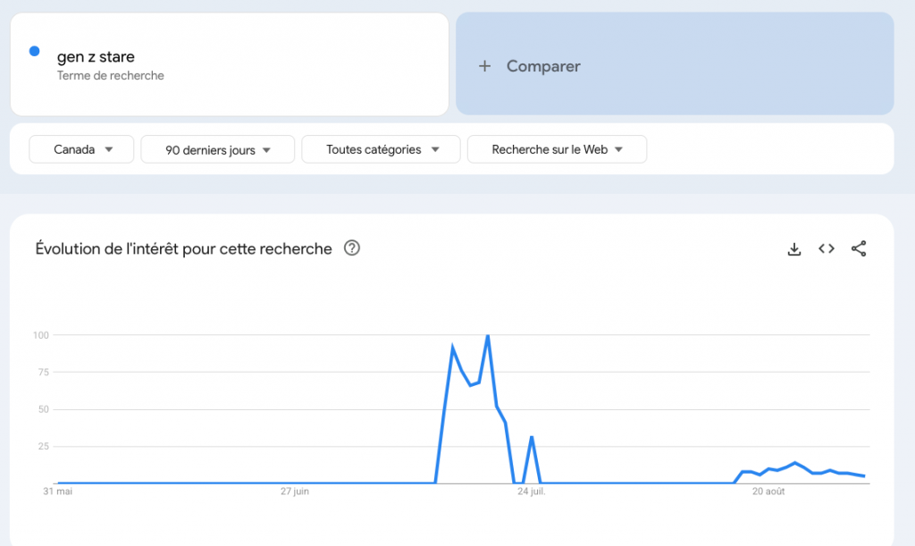 La tendance a émergé dans le courant de l’été, comme on témoigne une recherche sur Google Trends. Les vidéos TikTok se sont multipliées sur le phénomène, ce qui a amené l’habituelle couverture médiatique sur Forbes et Radio-Canada par exemple.