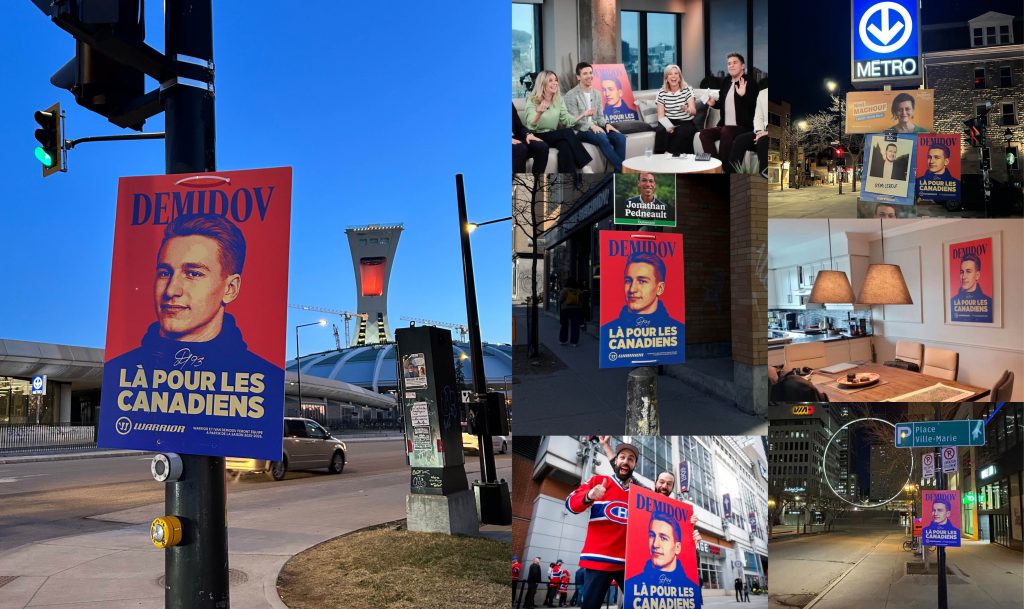 L’actualité montréalaise vit présentement sur deux sujets : les élections fédérales et l’arrivée d’Ivan Demidov avec les Canadiens de Montréal. S’inspirant de ces deux réalités, Warrior, le nouveau partenaire exclusif du prodige russe, a réalisé un coup d’éclat lundi dernier dans les rues de Montréal avec son agence créative K72.