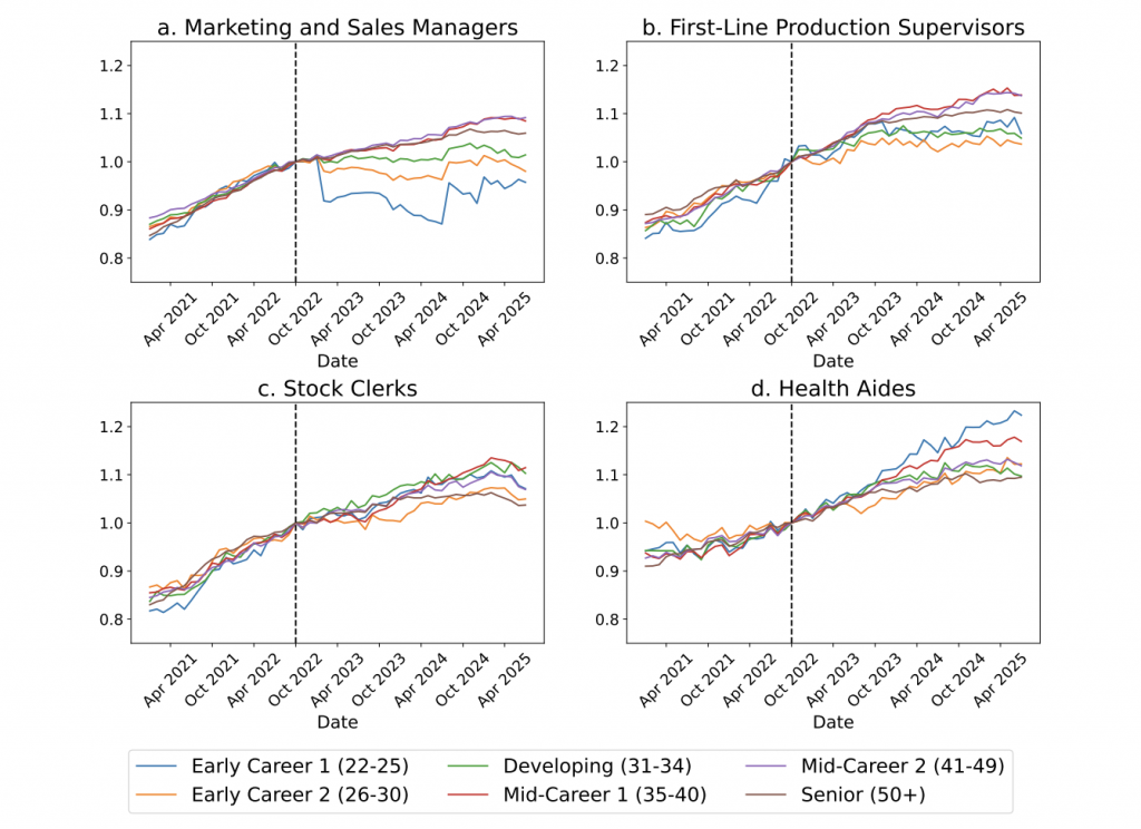 “Our findings are consistent with the hypothesis that AI has this effect on the job market, particularly for entry-level workers,” explains co-author Bharat Chandar.