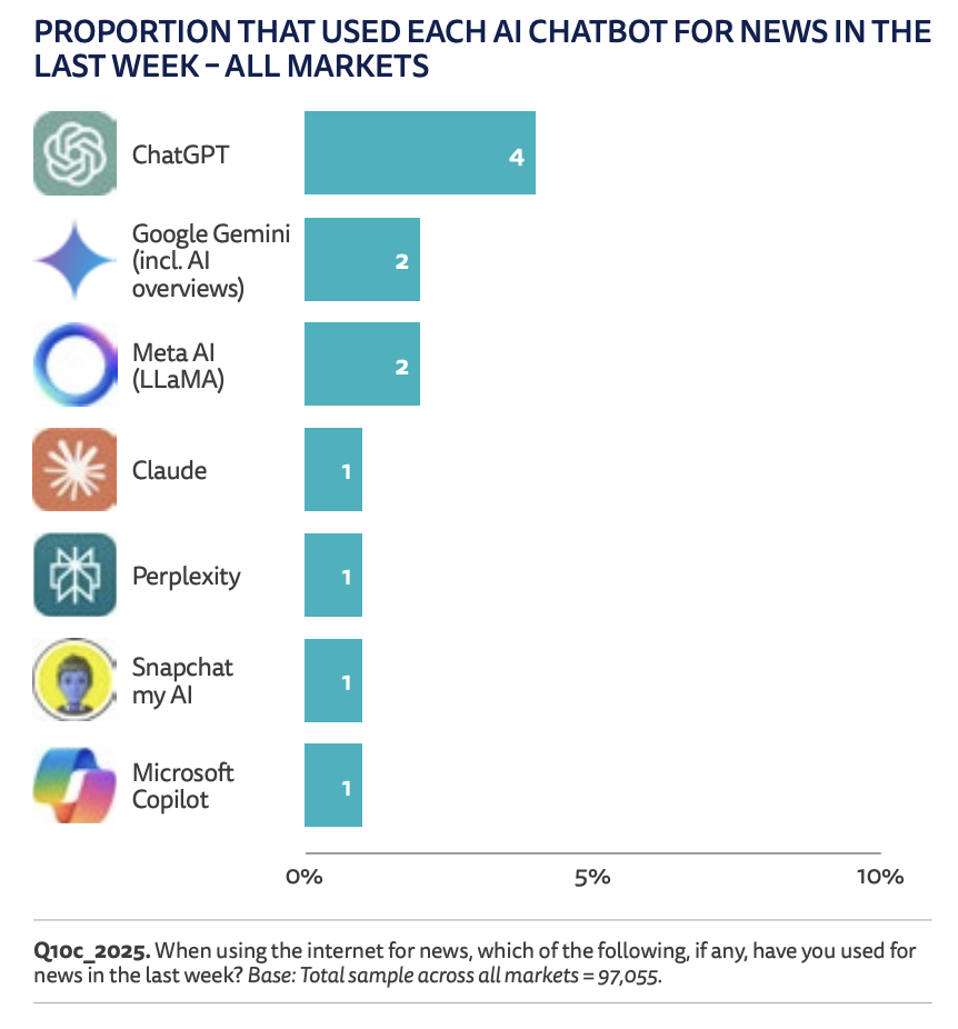 This is a trend that seems inevitable: the use of generative AI for getting information. Admittedly, it’s still in its infancy. Only 7% of surveyed individuals use ChatGPT or Gemini, for example, for this purpose each week. But it’s starting to become significant among those under 25 (15%). 3% of the latter even declare it to be their main source of information.